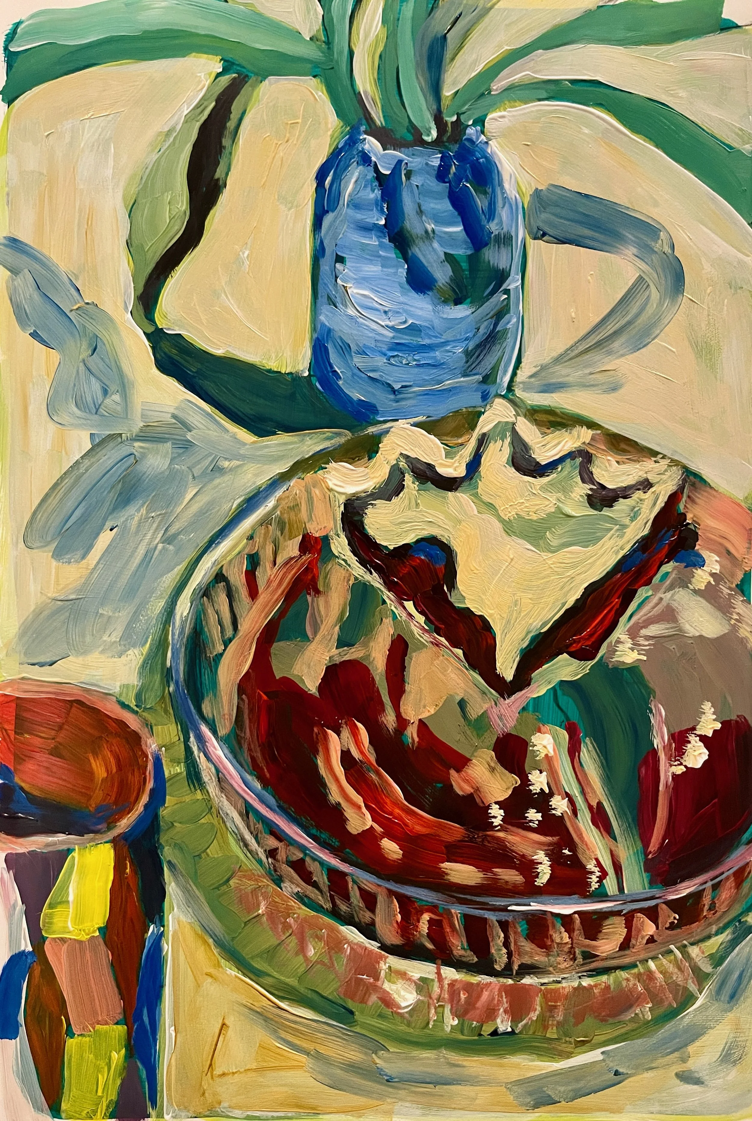 Cherry pie is a still life painting of a delicious homemade cherry pie using a recent discovery - year round frozen cherries - and enjoyed by everyone.